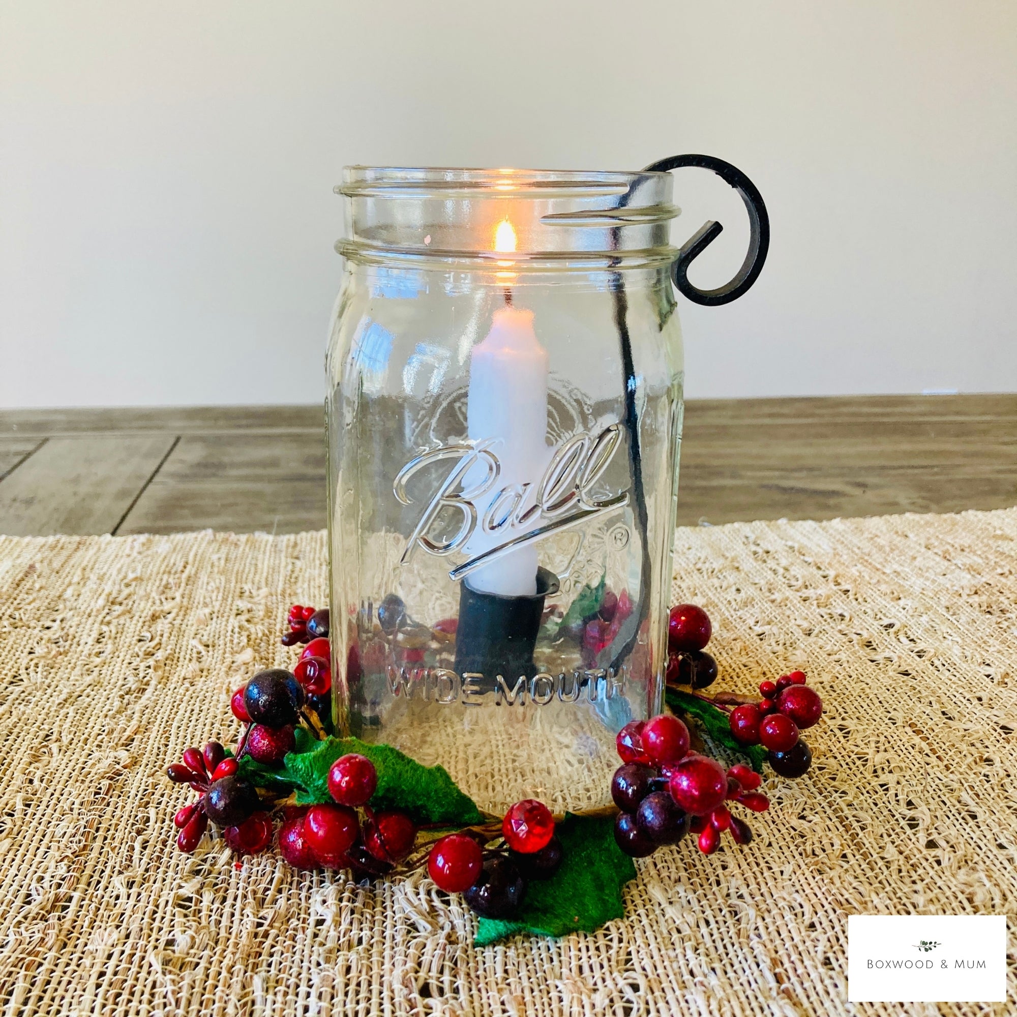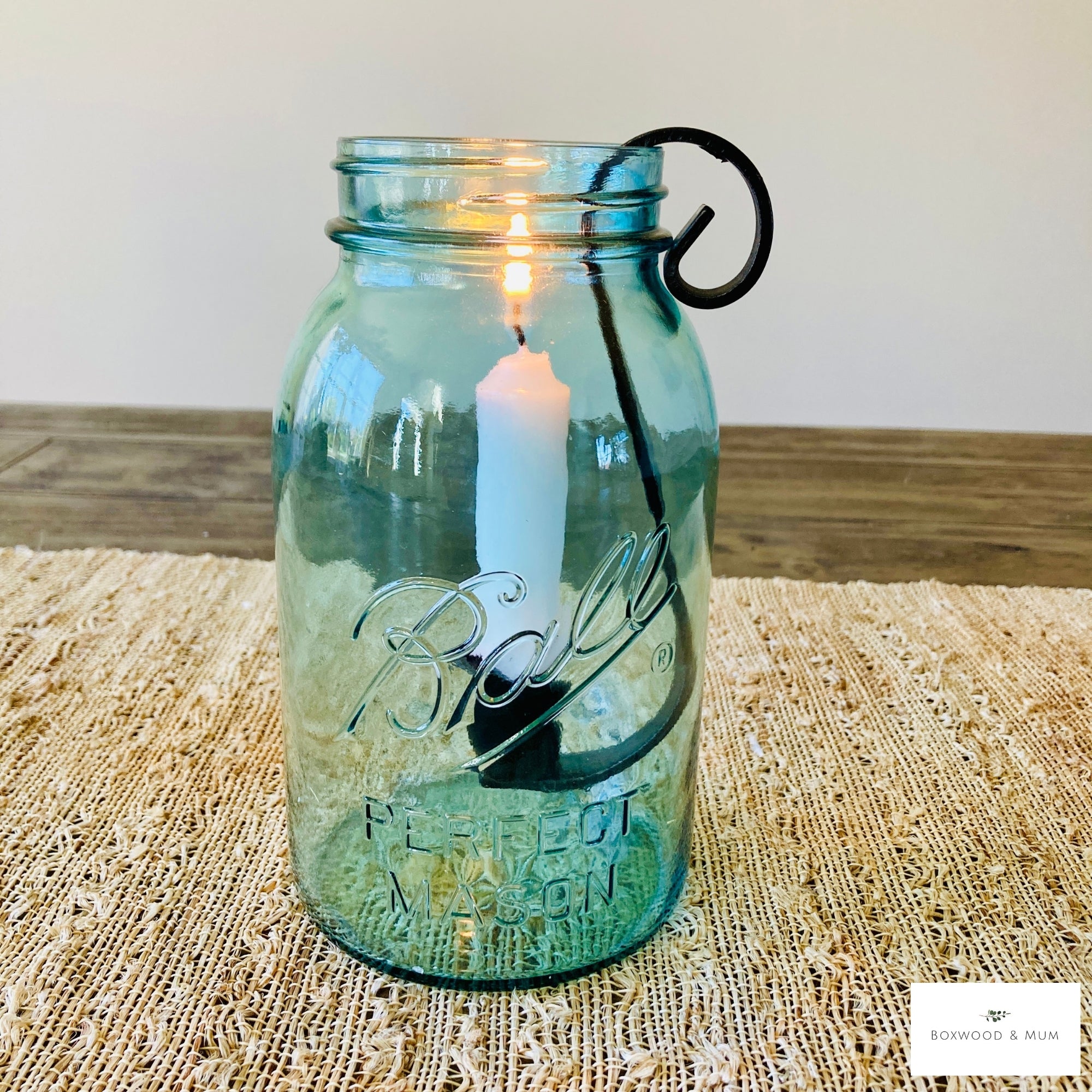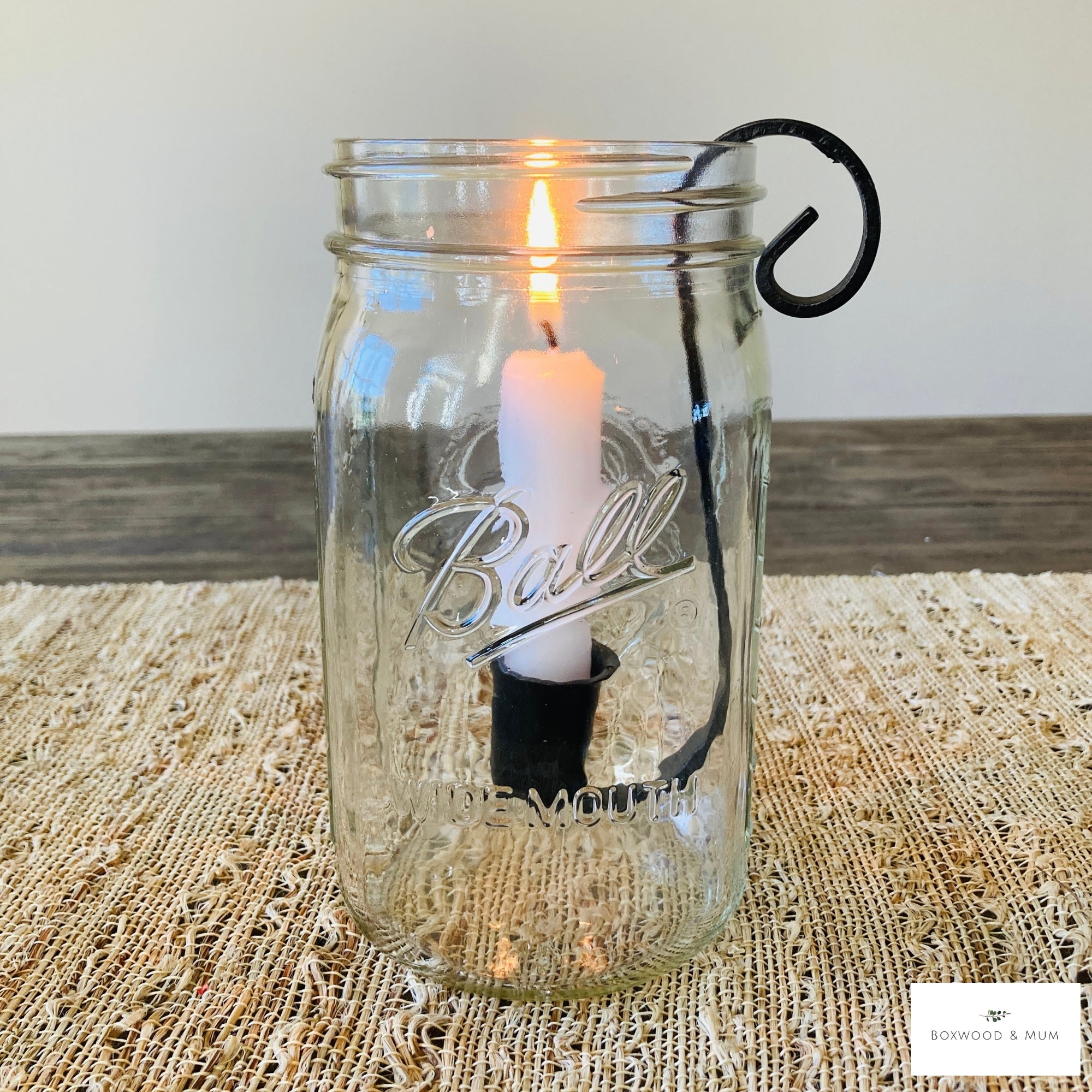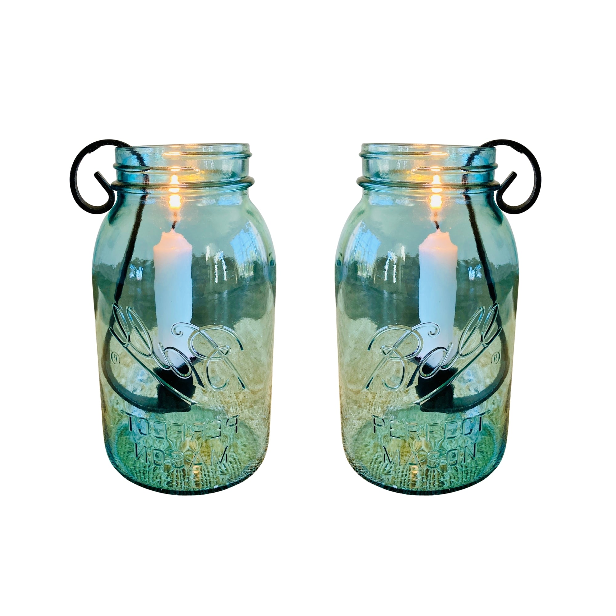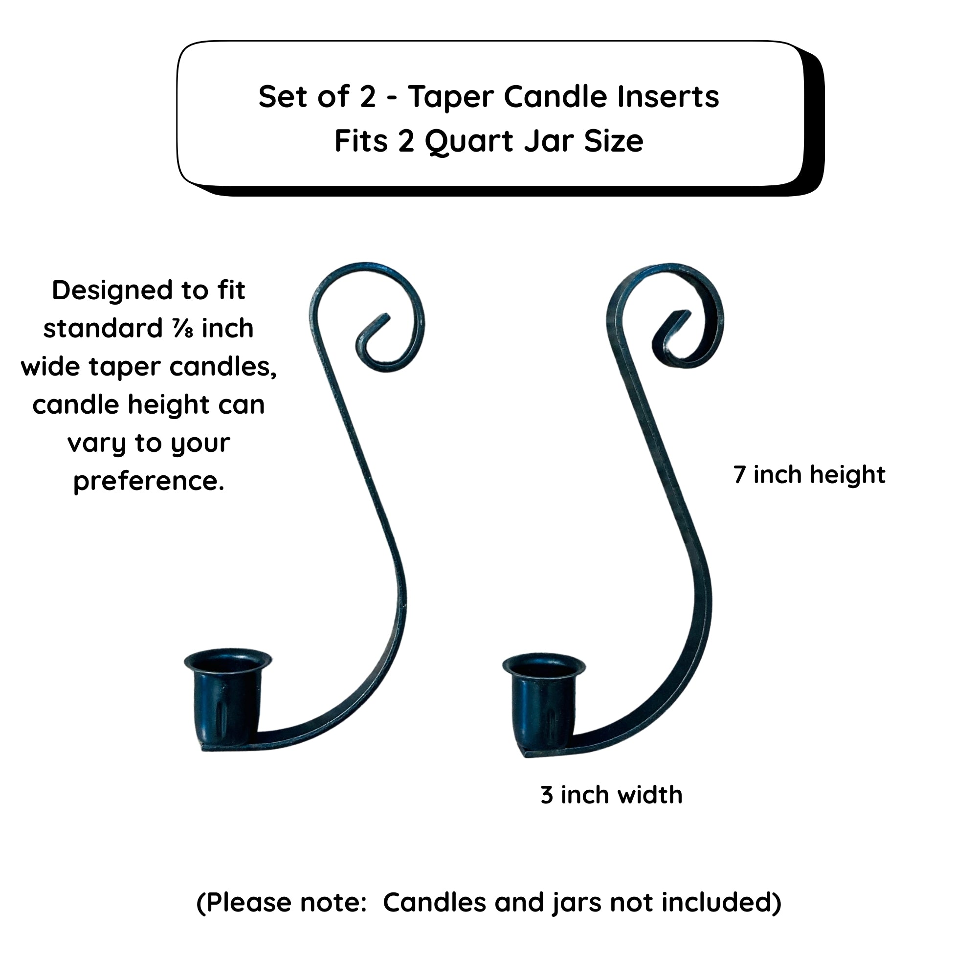 Add cozy farmhouse charm to your home with this set of 2 handmade Mason Jar Taper Candle Holder Inserts. Each wrought iron candle hook is designed to fit perfectly into a 1 or 2 quart (choose your size at check out) standard mason jar, turning it into a beautiful rustic candle display for any season.