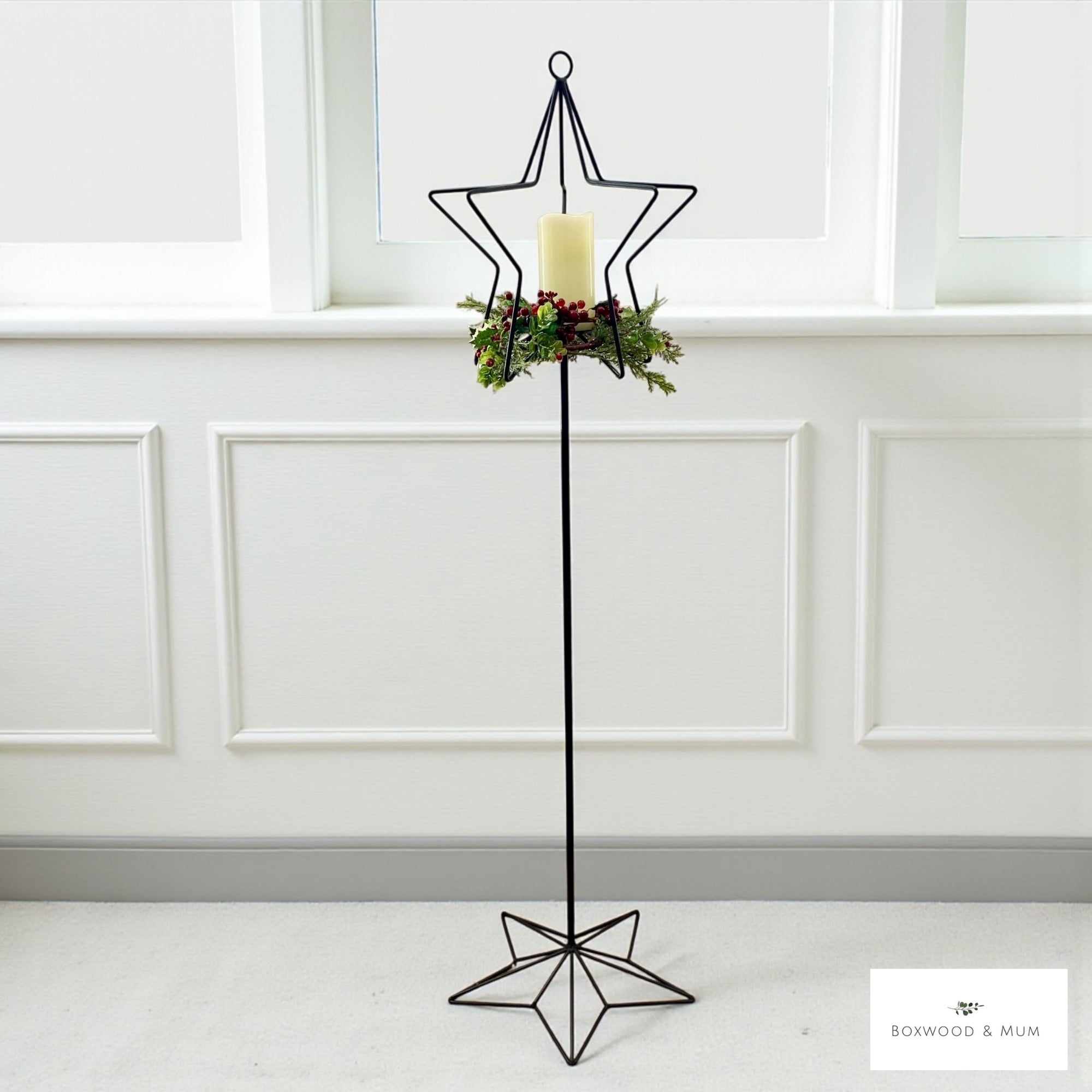 Each metal stand is shaped into star with a sturdy base and center candle platform. Perfect for displaying pillar candles, LED candles, or seasonal greenery (not included), this minimalist yet elegant design makes it a versatile accent for your living room, entryway, or dining room holiday display.