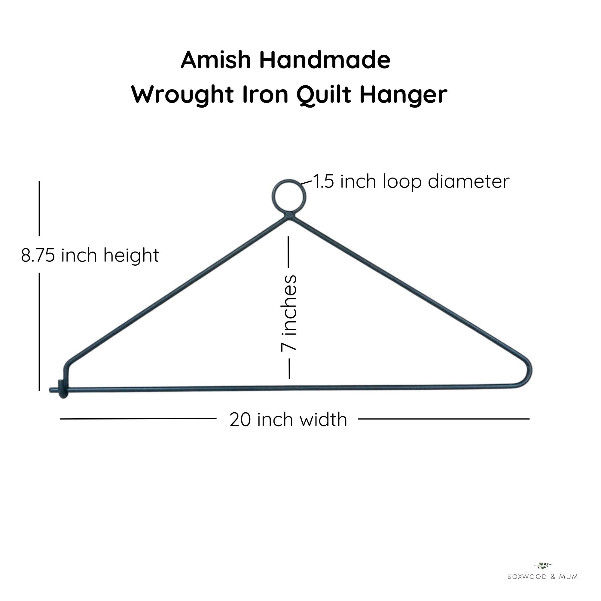 Bring your quilting and textile art to life with this handmade wrought iron quilt hanger, designed to turn your fabrics into stunning wall décor. Whether you’ve created a treasured family tapestry heirloom, a seasonal wall hanging, or a handmade blanket, this display rack is a charming way to display your sewing and artwork in your home. Each hanger is hand-forged by Amish blacksmiths in Lancaster County, PA, ensuring lasting quality and strength. The elegant, rustic black finish blends seamlessly with farmhouse, traditional, or rustic home décor. Easy to install and use, this quilt hanger is perfect for sewing rooms, living areas, bedrooms, dining rooms, craft rooms, galleries or entryways. It is also a sweet way to display a baby blanket or quilt in a nursery room. More than just a functional piece, it’s a beautiful way to celebrate craftsmanship, creativity, and heritage. Give the gift of a quilt display hanger to a quilting enthusiast, crafter, or loved one—it’s a meaningful way to honor handmade art.